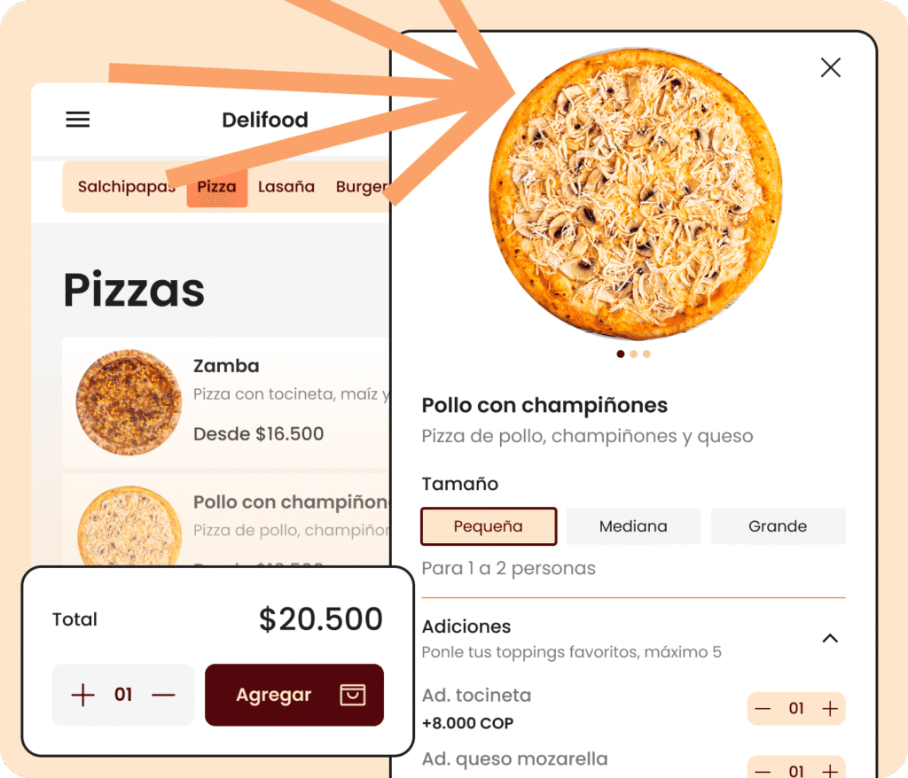 Un menú digital mejora la experiencia del cliente, fomenta decisiones más rápidas y permite destacar combos, sugerencias o adiciones. Todo esto sin esfuerzo extra y sin costo por venta.