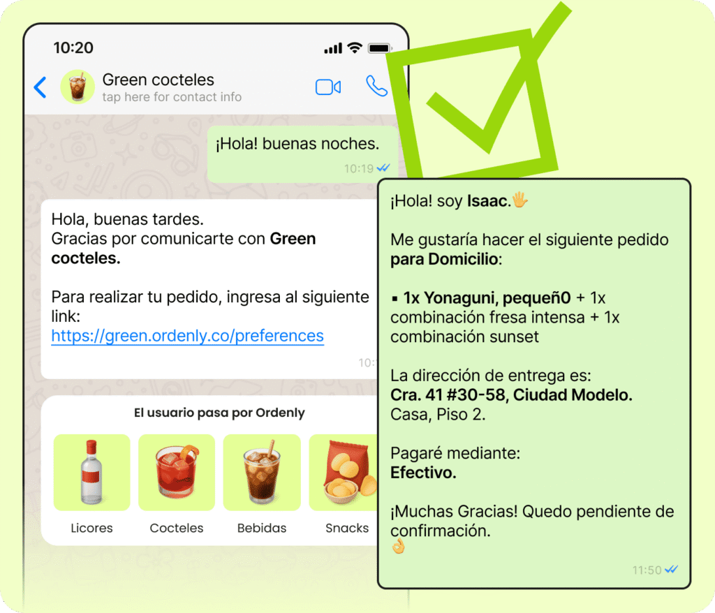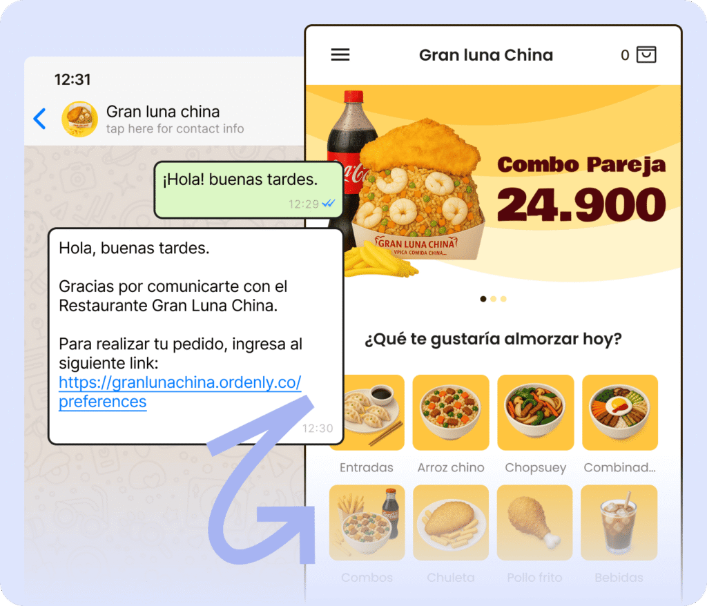 No necesitas plataformas nuevas, ni cambiar cómo gestionas pedidos. Ordenly se adapta a ti: montamos tu carta, la enlazamos a tu número y listo. Tus clientes ordenan, tú solo respondes por WhatsApp.